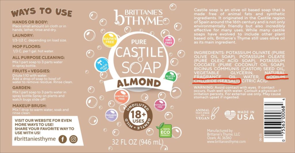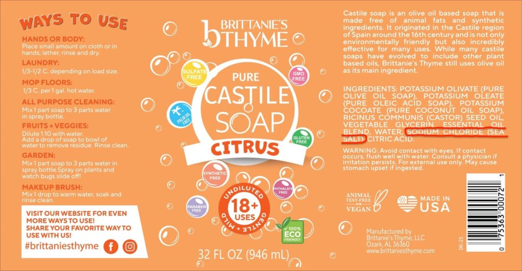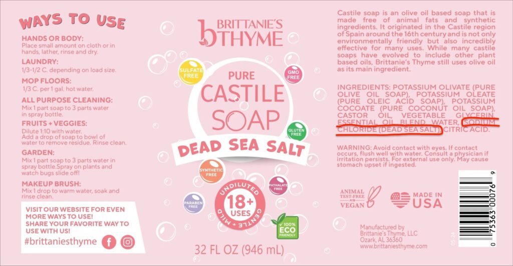 There are other castile soaps on the market as well, but you always have to check the labels carefully. Many contain sodium.