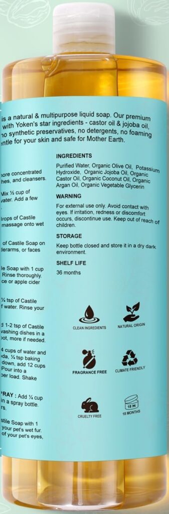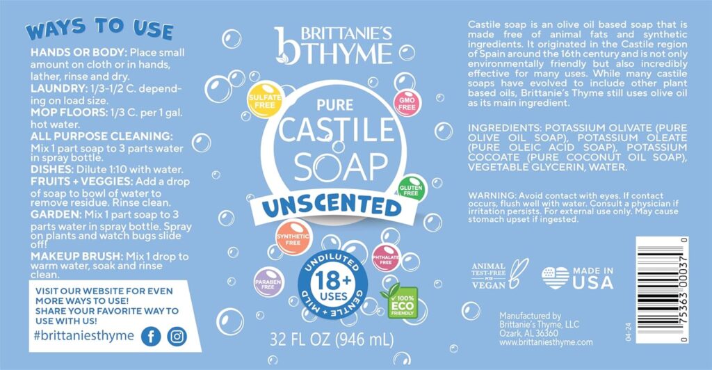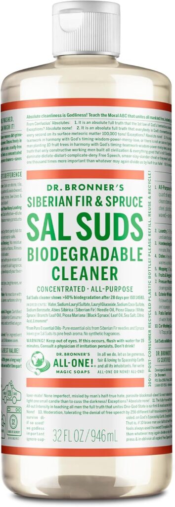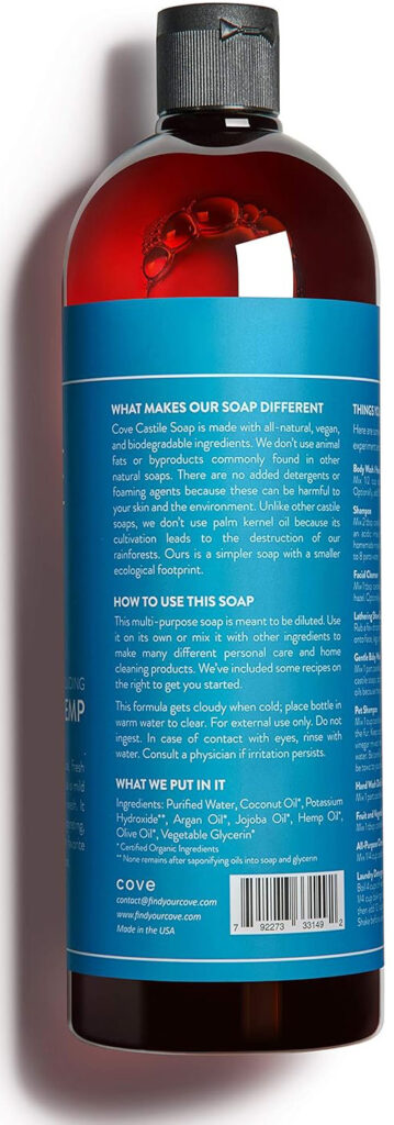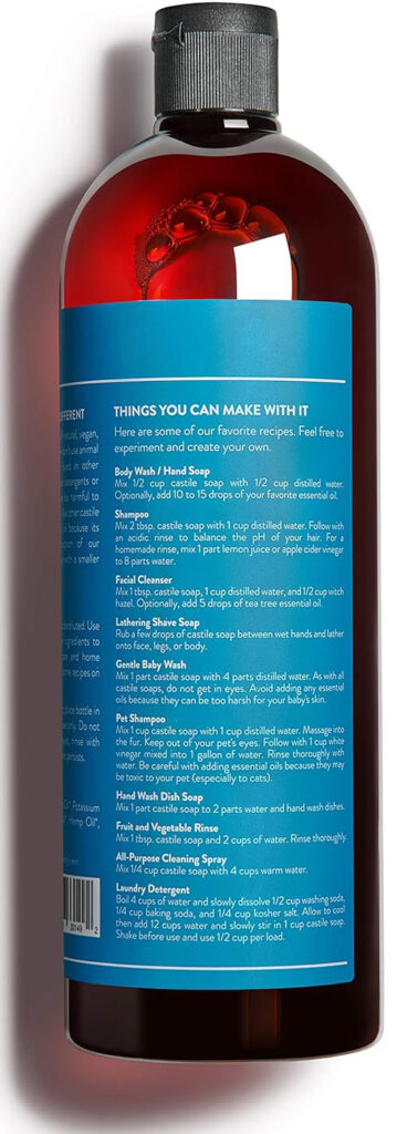 There’s a dilution guide on the Dr. Bronner website to guide you in the many uses of castile soap.