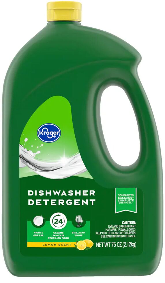 There are now gel detergents as well, which are sort of like liquids but formulated for dishwashing machines. They specify on the label that they’re dangerous for hand washing. They still rely on enzymes, and they’re still full of salt.