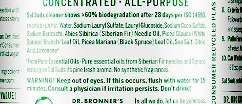 Surprise! This is a Dr. Bronner’s product that is NOT suitable for use in graywater applications. Always check the ingredient list – three different kinds of sodium here.